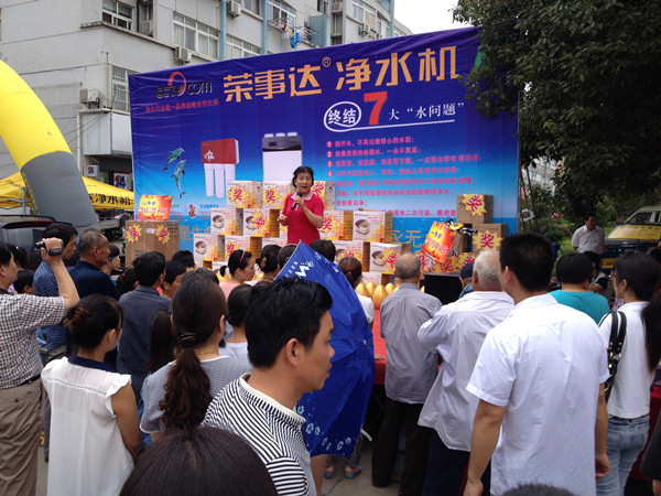 為打開市場(chǎng)、推廣產(chǎn)品,蕪湖管理中心舉辦了多次市場(chǎng)活動(dòng)。7月5日,榮事達(dá)凈水機(jī)“送健康 進(jìn)萬(wàn)家”感恩回饋活動(dòng)在蕪湖市三山區(qū)順利舉行,現(xiàn)場(chǎng)人氣爆棚。消費(fèi)者購(gòu)機(jī)不但能享受價(jià)格優(yōu)惠,還能砸金蛋抽大獎(jiǎng)?;顒?dòng)當(dāng)天,現(xiàn)場(chǎng)成交凈水機(jī)達(dá)34臺(tái),電動(dòng)車、洗衣機(jī)等大獎(jiǎng)均被抽出。